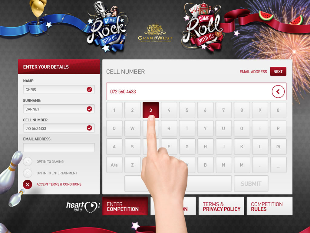 A touchscreen competition entry mechanism aimed at building a database of non-MVG GrandWest customers.